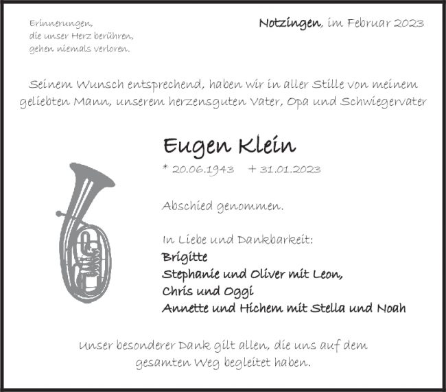 Trauer Eugen Klein