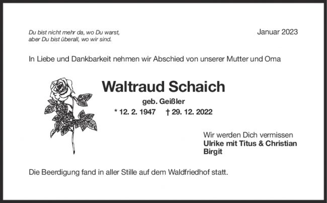 TodesanzeigeVon 24. Januar 2023Kommentar hinterlassen