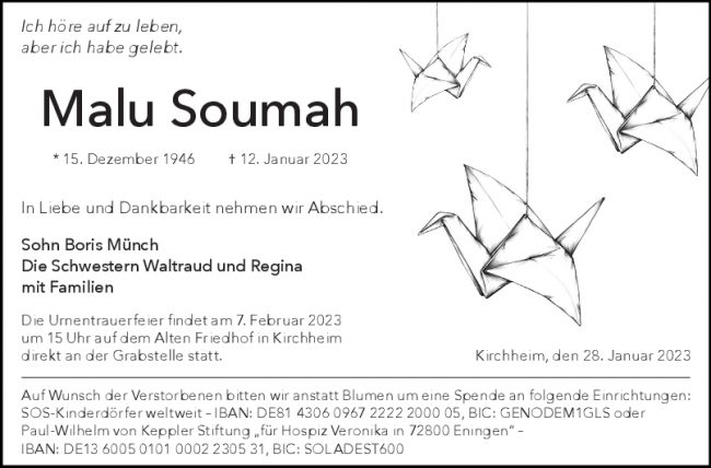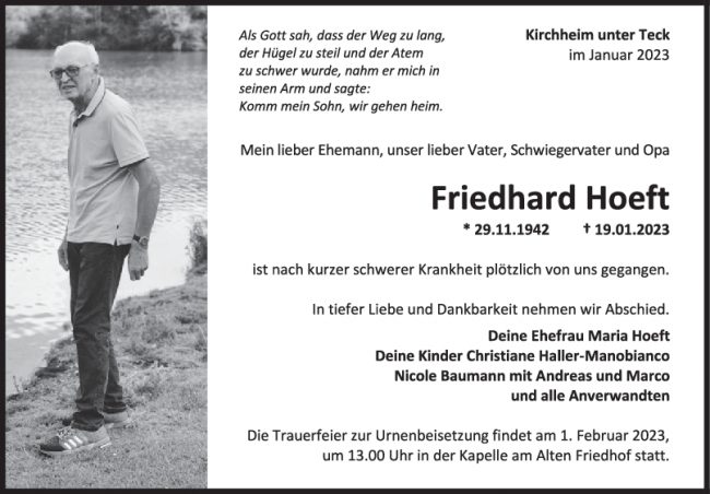 TodesanzeigeVon Benny Kuder24. Januar 2023Kommentar hinterlassen