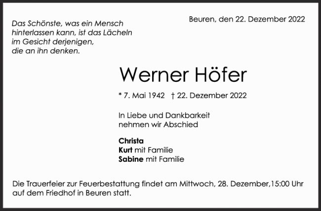 TodesanzeigeVon 28. Dezember 2022Kommentar hinterlassen