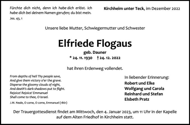 Trauer Elfriede Flogaus