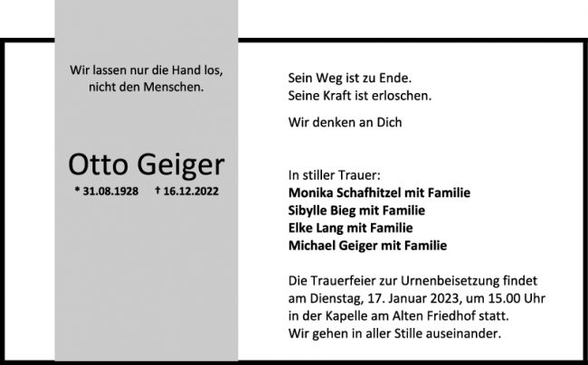 Trauer Otto Geiger