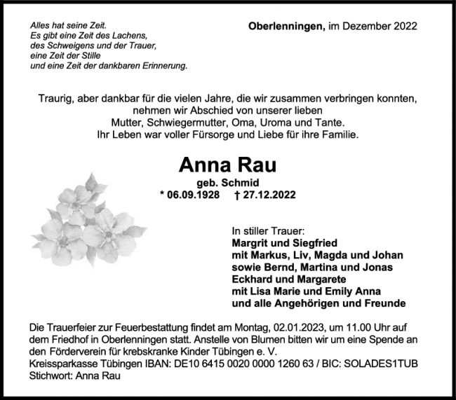 Trauer Anna Rau 30/12/2022