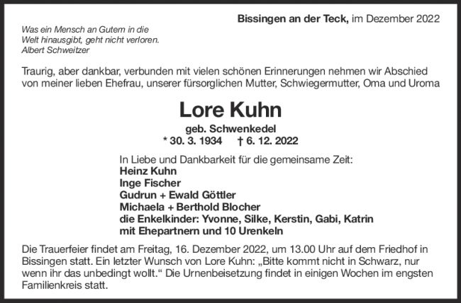 TodesanzeigeVon Benny Kuder10. Dezember 2022Kommentar hinterlassen