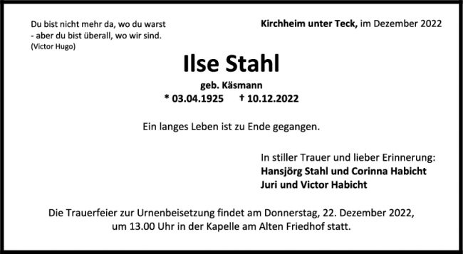 TodesanzeigeVon Benny Kuder14. Dezember 2022Kommentar hinterlassen