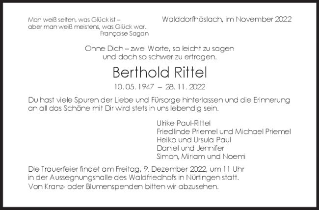 Trauer Berthold Rittel
