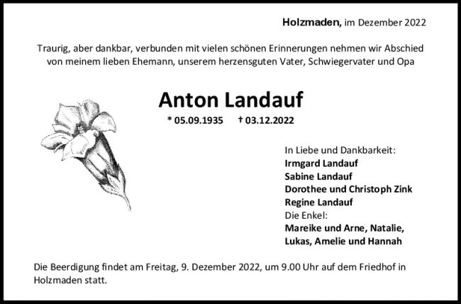 Trauer Anton Landauf 06/12/2022