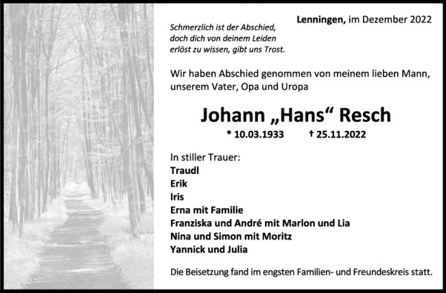 Trauer Johann Resch