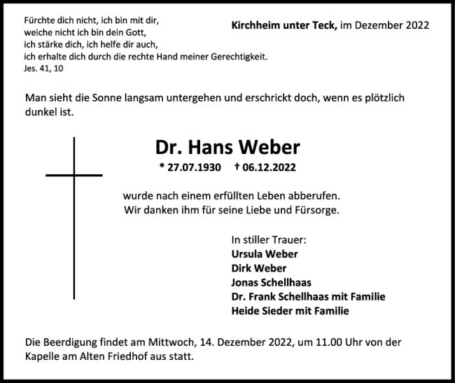 Trauer Dr. Hans Weber 10/12/2022