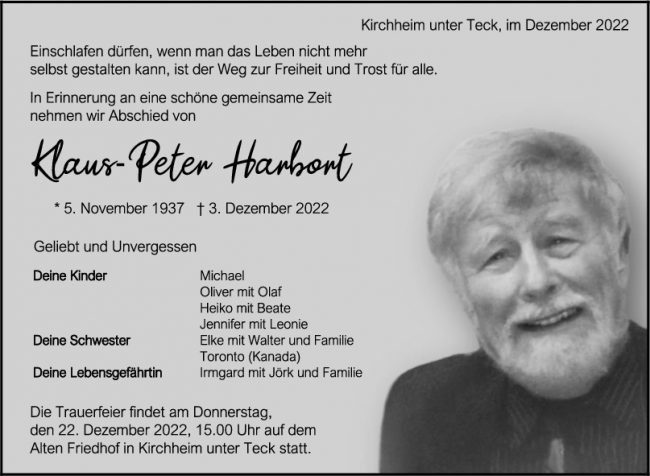 Trauer Klaus-Peter Harbort 10/12/2022