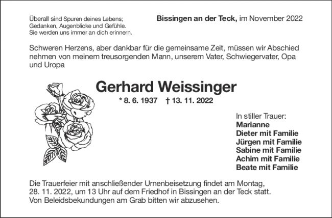 Trauer Gerhard Weissinger
