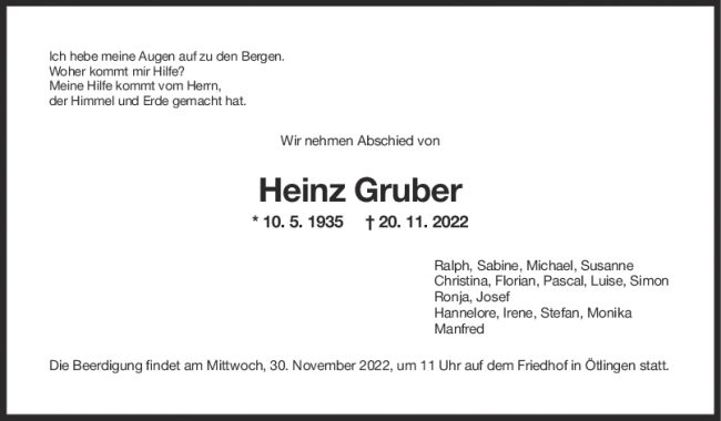 Trauer Heinz Gruber