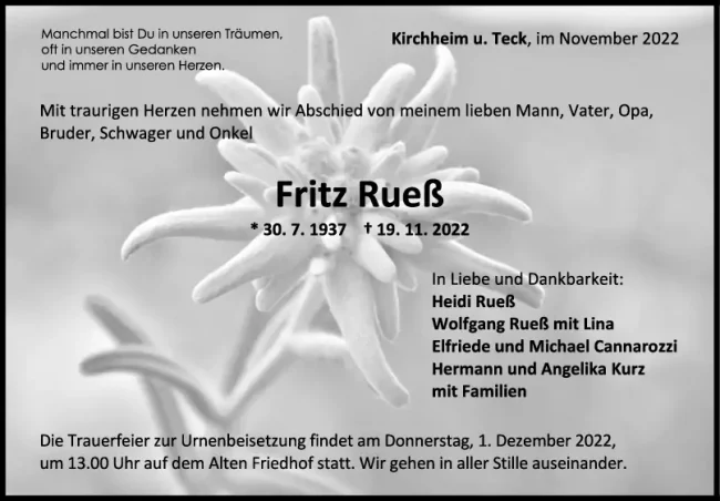 Trauer Fritz Rueß