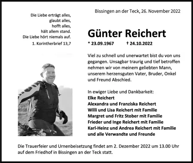 Trauer Günter Reichert