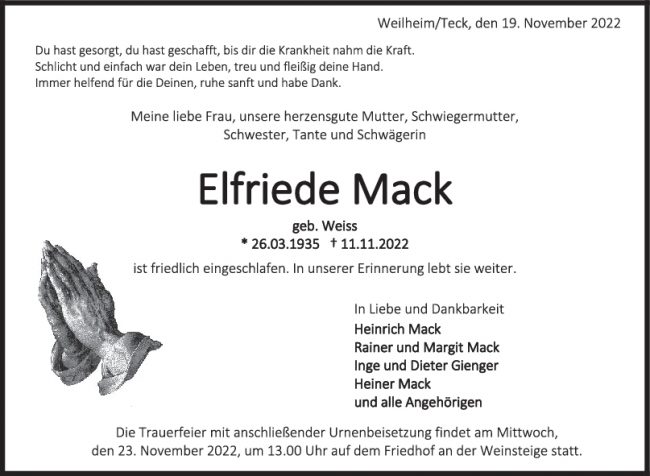 TodesanzeigeVon Benny Kuder19. November 2022Kommentar hinterlassen
