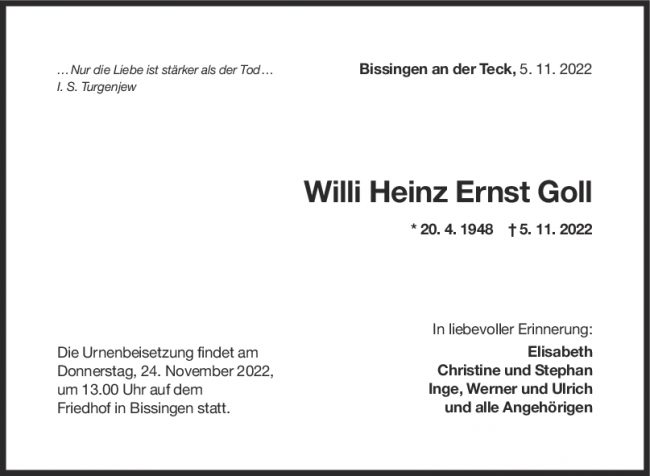 Trauer Willi Heinz Ernst Goll 19/11/2022