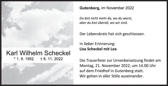 Trauer Karl Wilhelm Scheckel 17/11/2022