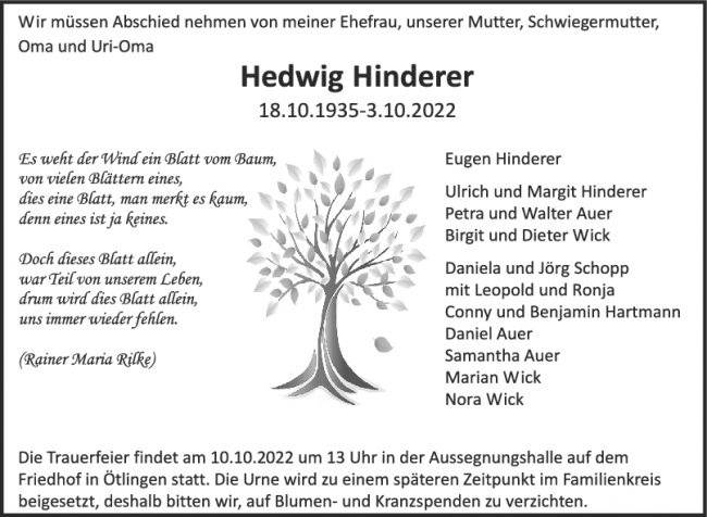 TodesanzeigeVon Benny Kuder6. Oktober 2022Kommentar hinterlassen