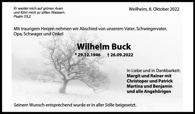 TodesanzeigeVon Benny Kuder8. Oktober 2022Kommentar hinterlassen