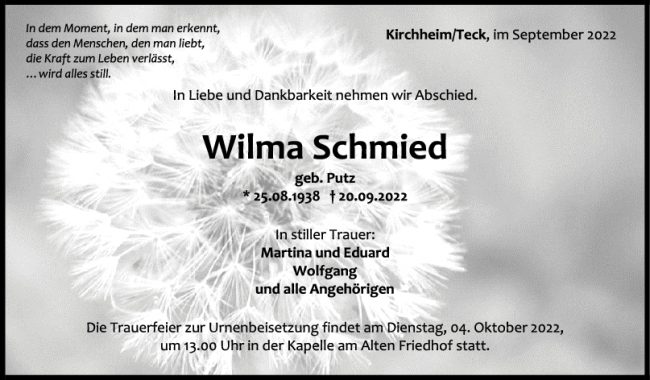 TodesanzeigeVon 24. September 2022Kommentar hinterlassen