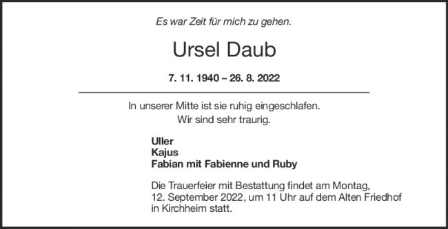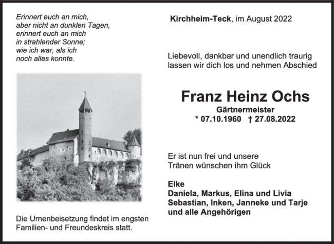 TodesanzeigeVon Benny Kuder8. September 2022Kommentar hinterlassen