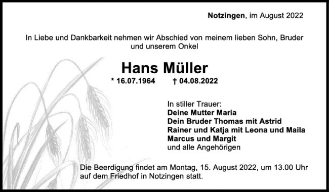 TodesanzeigeVon Benny Kuder13. August 2022Kommentar hinterlassen