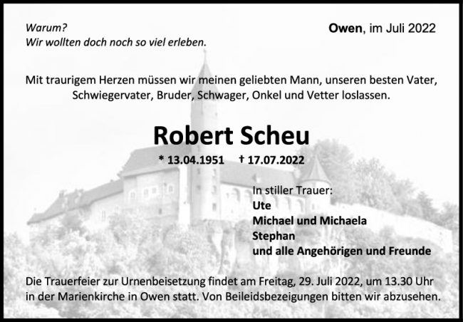 Trauer Robert Scheu 25/07/2022