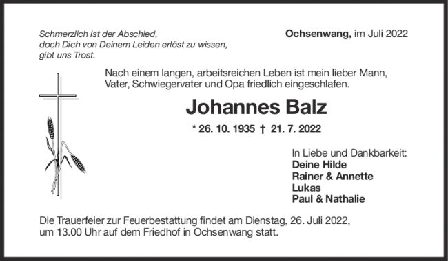 Trauer Johannes Balz 25/07/2022