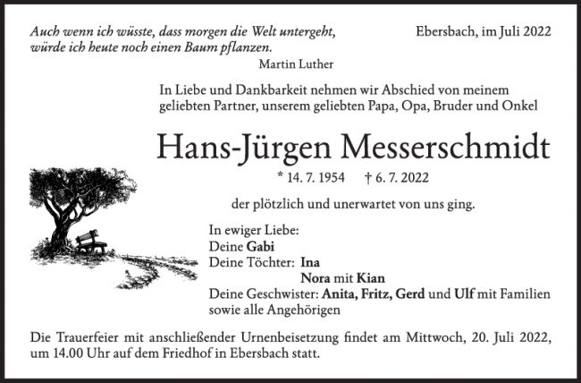 Trauer Hans-Jürgen Messerschmidt 14/07/2022