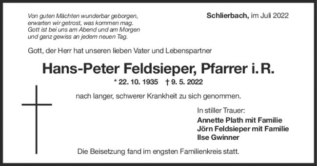 Trauer Hans-Peter Feldsieper 09/07/2022