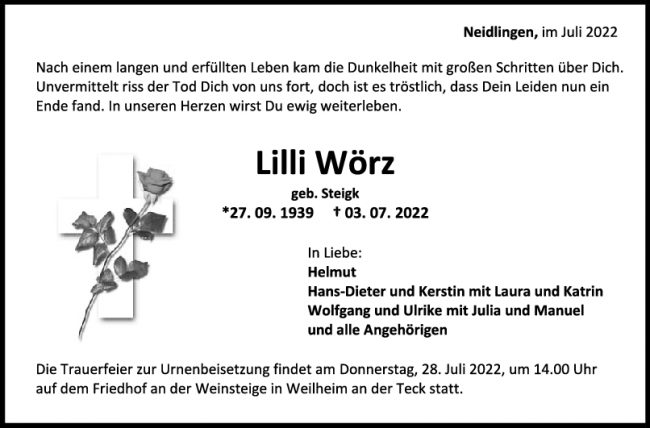 Trauer Lili Wörz 08/07/2022