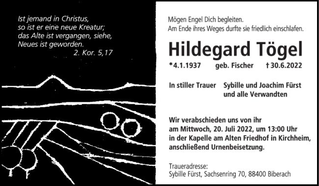 Trauer Hildegard Tögel 09/07/2022