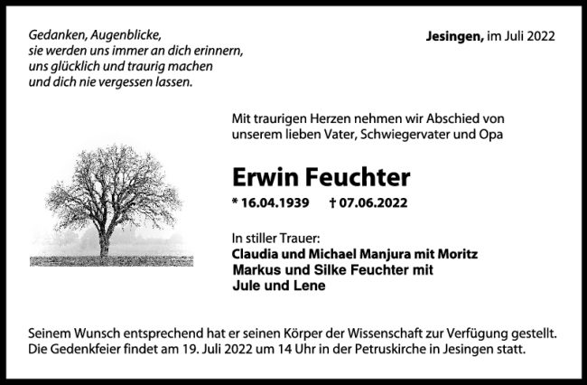 Trauer Erwin Feuchter 09/07/2022