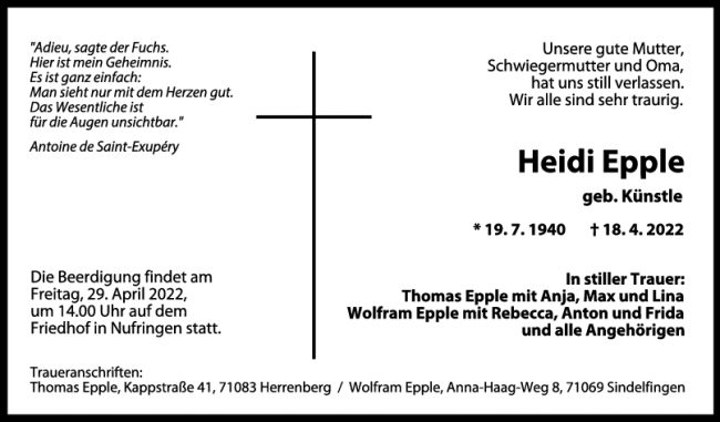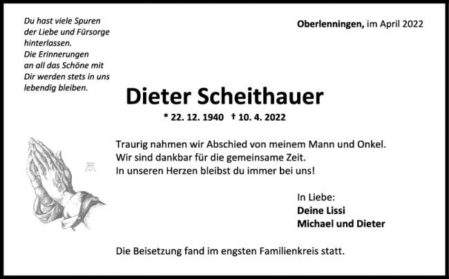 TodesanzeigeVon Benny Kuder24. April 2022Kommentar hinterlassen