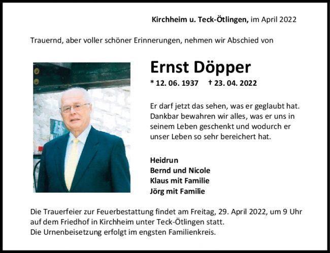 TodesanzeigeVon Benny Kuder23. April 2022Kommentar hinterlassen