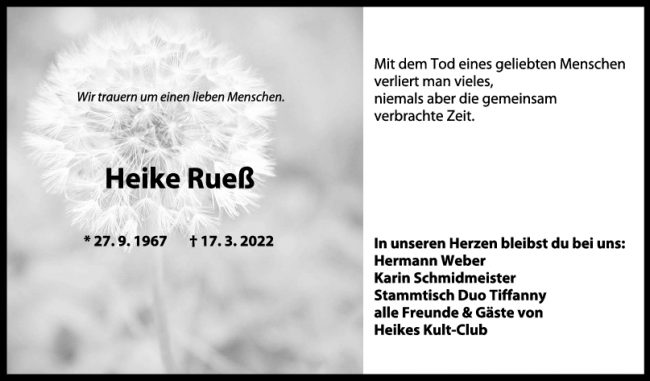 TodesanzeigeVon Benny Kuder27. März 2022Kommentar hinterlassen