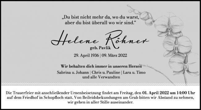 TodesanzeigeVon 22. März 2022Kommentar hinterlassen