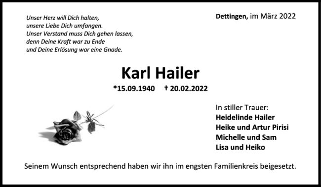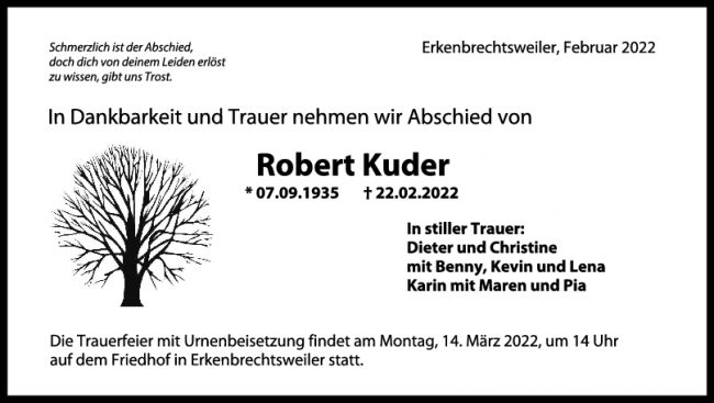 TodesanzeigeVon Benny Kuder5. März 2022Kommentar hinterlassen
