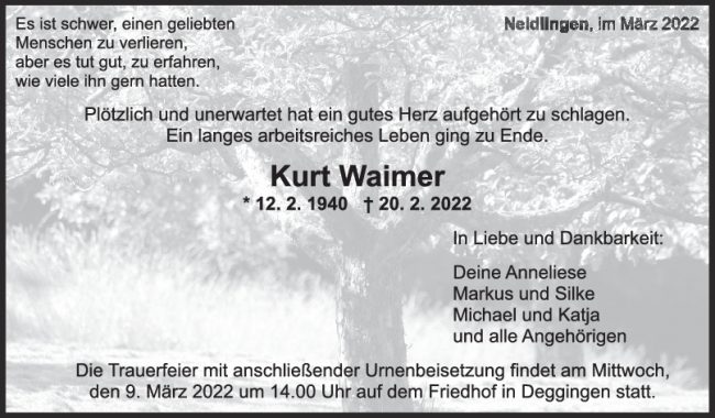 TodesanzeigeVon Benny Kuder6. März 2022Kommentar hinterlassen