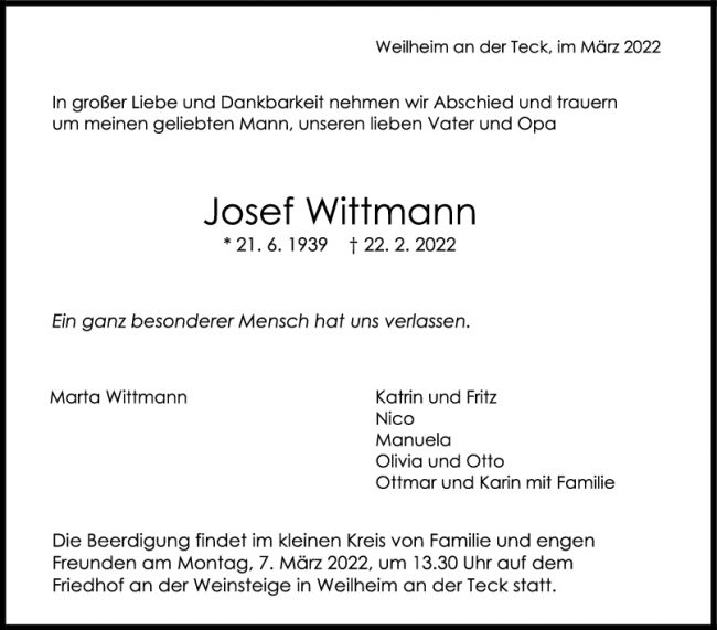 TodesanzeigeVon 28. Februar 2022Kommentar hinterlassen