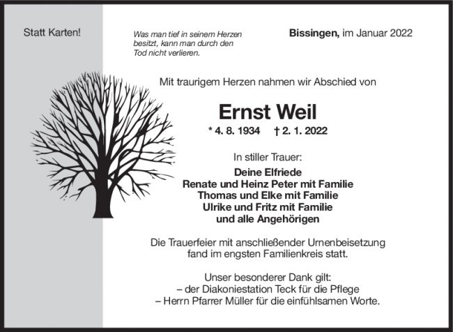 Trauer Ernst Weil