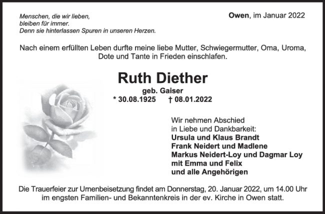 Trauer Ruth Diether