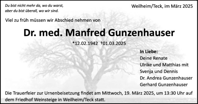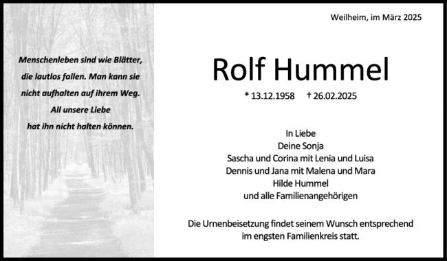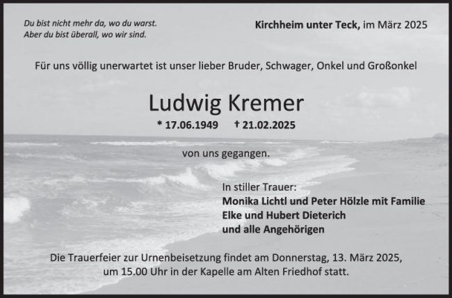TodesanzeigeVon Benny Kuder8. März 2025Kommentar hinterlassen