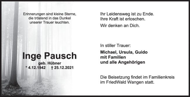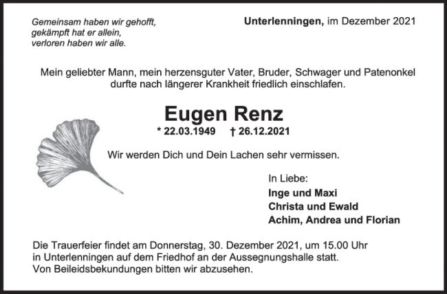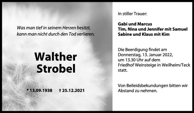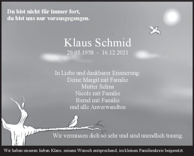 TodesanzeigeVon Benny Kuder29. Dezember 2021Kommentar hinterlassen