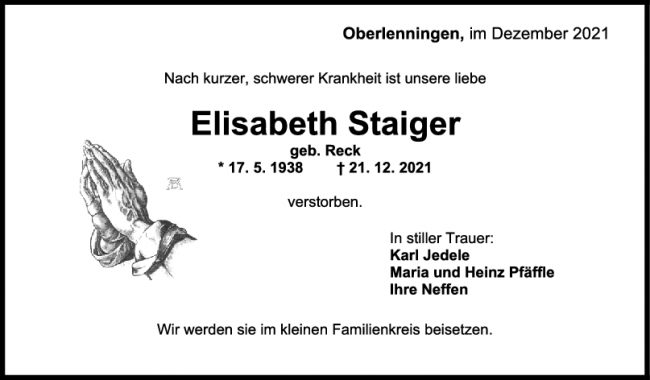 TodesanzeigeVon Benny Kuder28. Dezember 20211 Kommentar