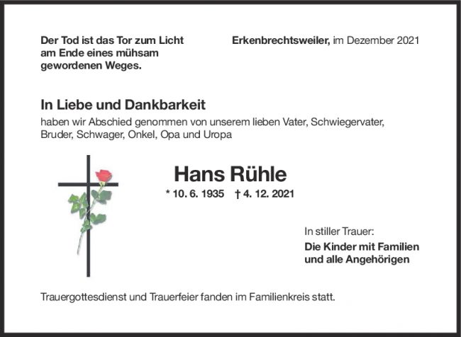 TodesanzeigeVon 21. Dezember 2021Kommentar hinterlassen