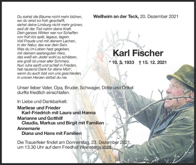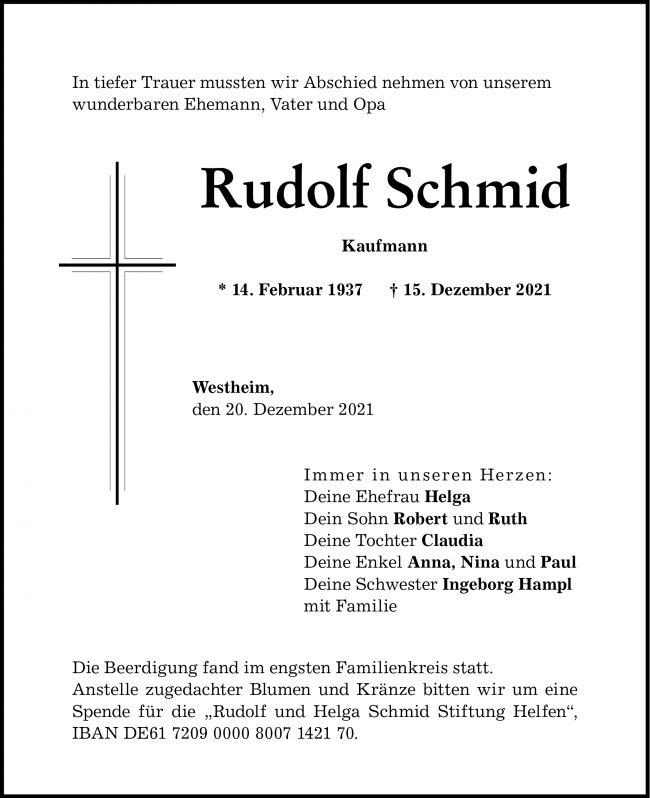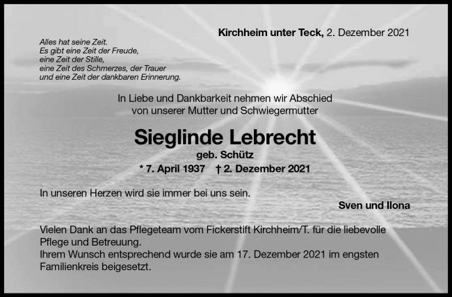 TodesanzeigeVon 19. Dezember 2021Kommentar hinterlassen