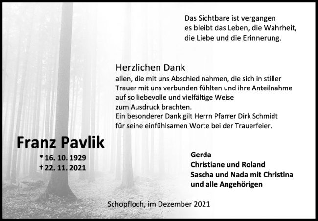 Danksagung Franz Pavlik