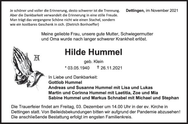 TodesanzeigeVon 30. November 2021Kommentar hinterlassen