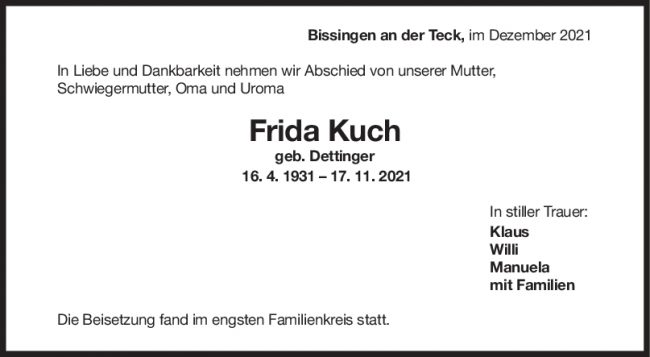 TodesanzeigeVon Benny Kuder1. Dezember 2021Kommentar hinterlassen